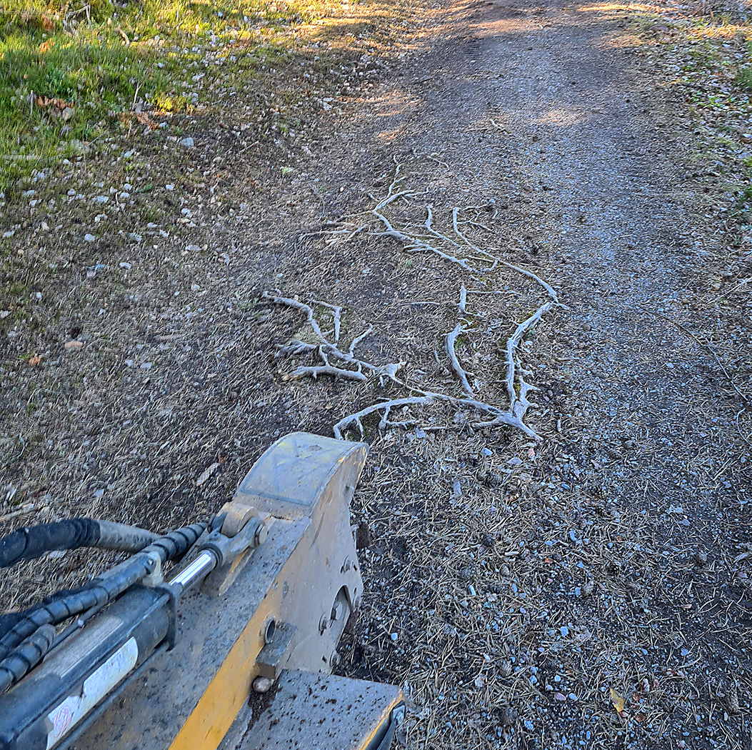 Fräsning av häck bestående av större träd hos kund utanför Linköping