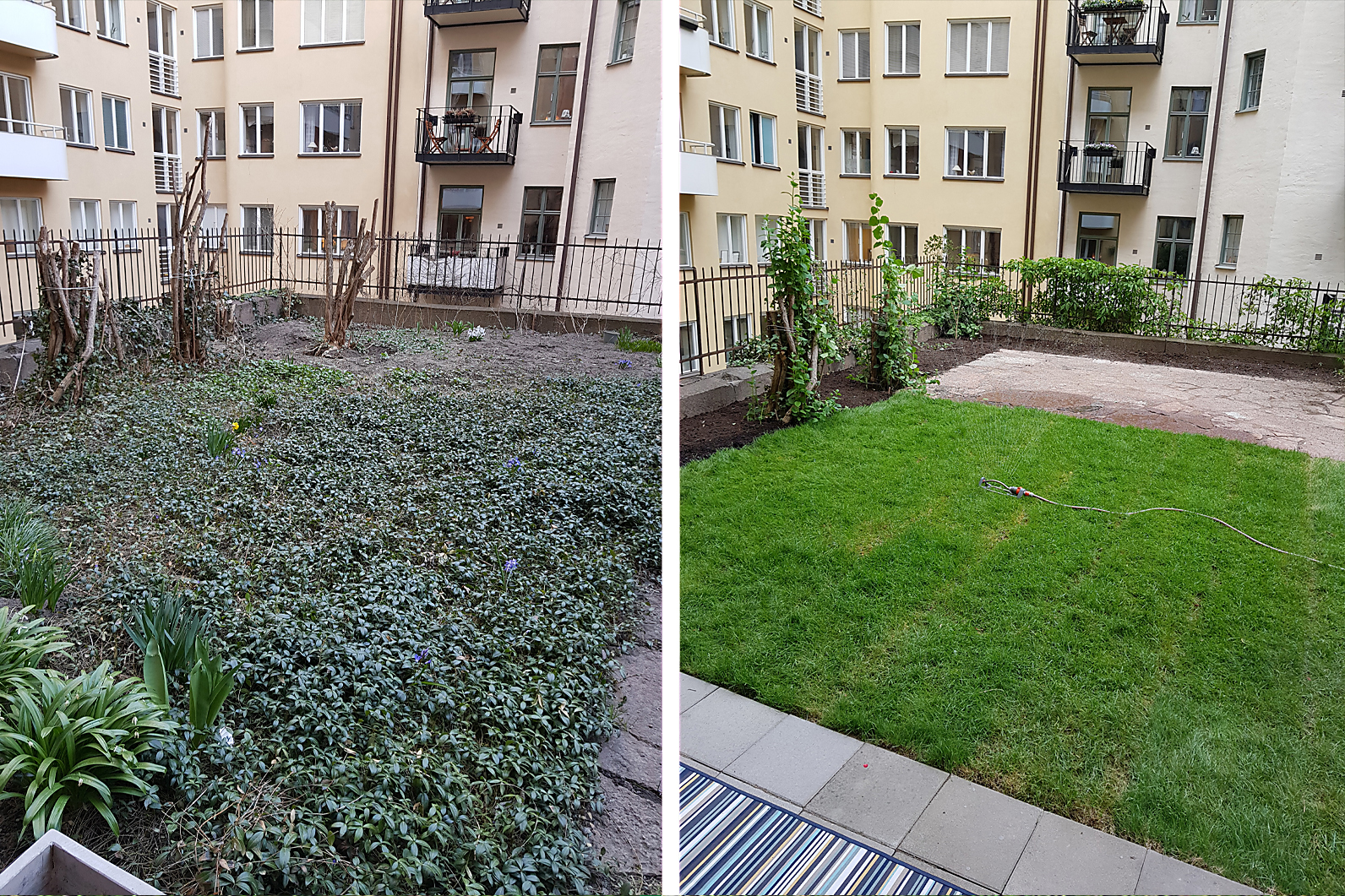 Resultatet från föregående bild. Stubbfräsning på innnergård hos bostadsrättsförening.