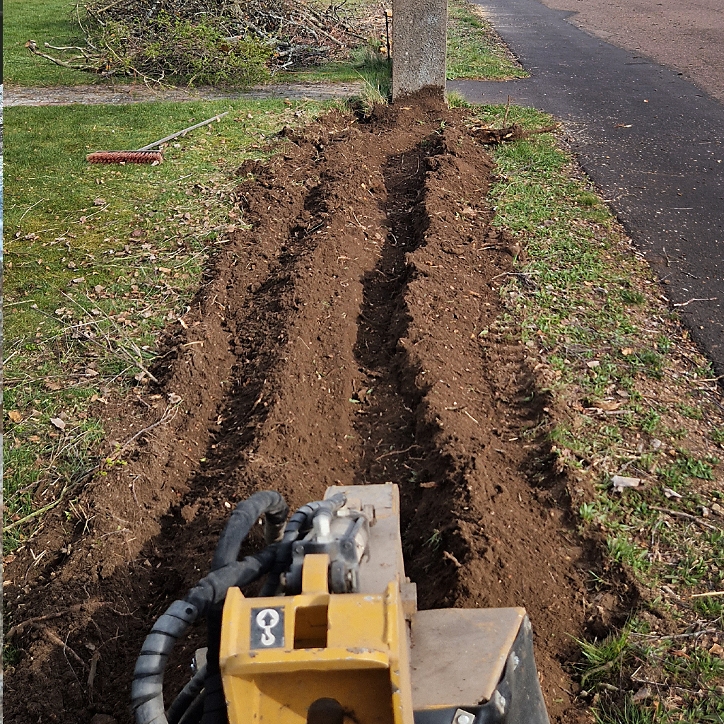 Oavsett om du har en stubbe eller ett större område hjälper vi dig hela vägen. Från borttagning till färdig yta.